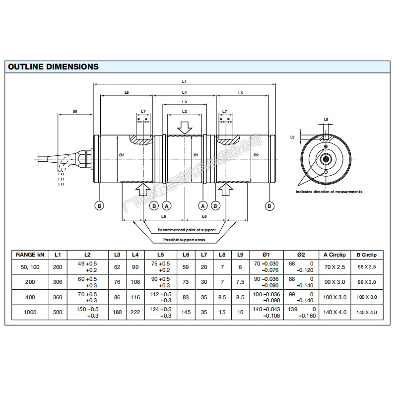(1)容量范围:50、100、200、400和1000千牛(11.2K、22.5K、45K、90K和225K磅)
