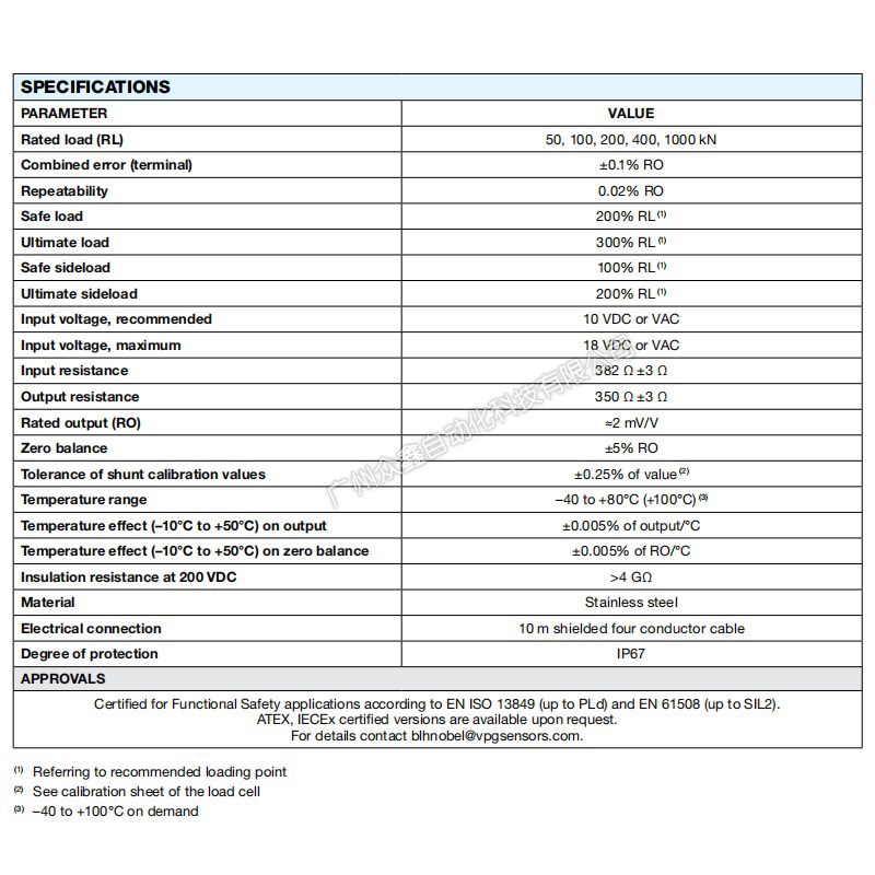 (2)所有KISD称重传感器都可以通过ATEX和IECEx认证,用于爆炸性环境