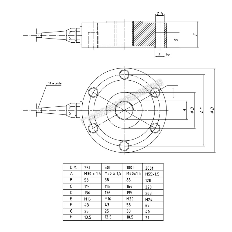 (6)10米特殊电缆。选项:带连接器的称重传感器