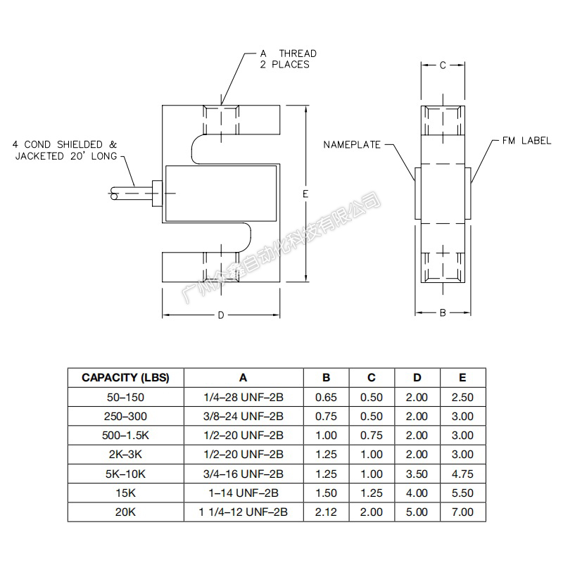 (1)容量范围:50至20K磅(22.7至9K千克)