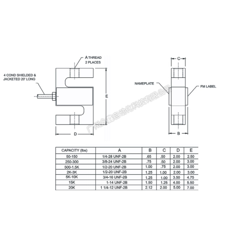 (1)容量范围:50至20K磅(22.7至9K千克)