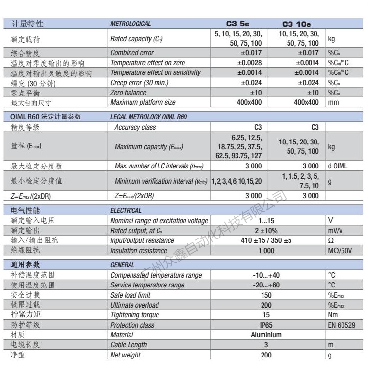 (2)认证精度可达 6 000d OIML R60和5 000d NTEP