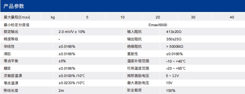 产品量程:5kg,10kg,20kg,30kg,40kg