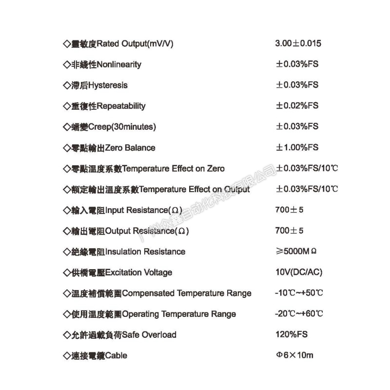 四、GF-4-10Klb称重传感器技术参数