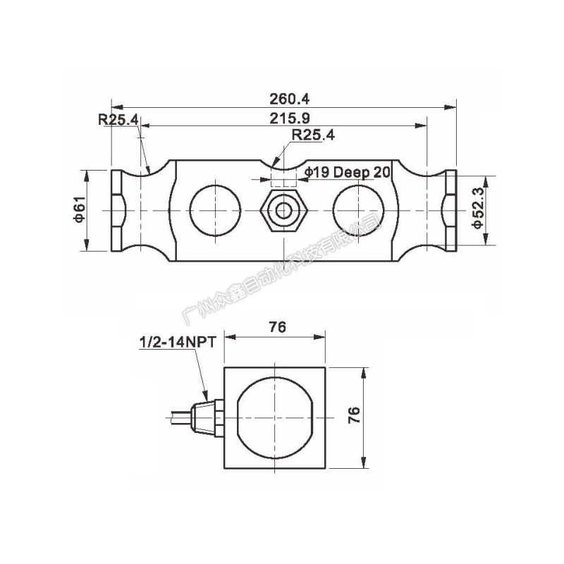 三、GF-5-100Klb称重传感器产品尺寸