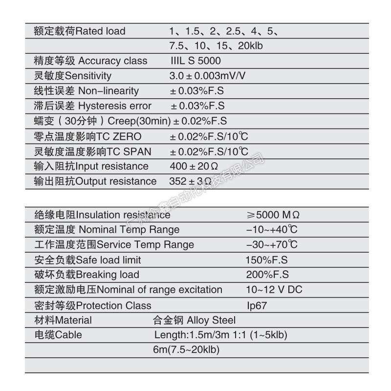 (5)电缆长度1.5m/3m 1:1(1~5klb);6m(7.5~20klb)