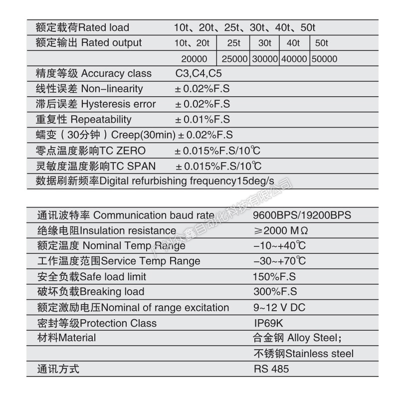 三、ZSWG-40t称重传感器产品参数