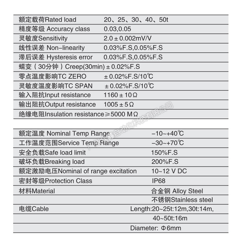 (5)电缆长度 12m(20~25t);14m(30t);16m(40~50t)