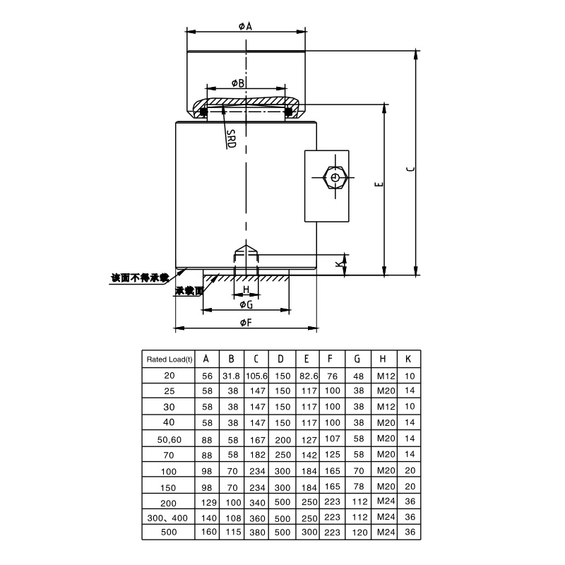 四、ZSE-500t称重传感器产品尺寸