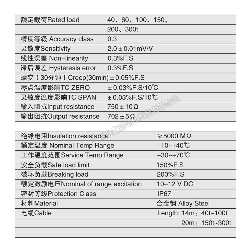 (5)电缆长度14m(40t~100t);20m(150t~300t)