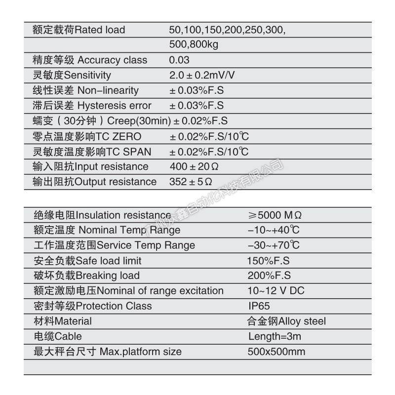 三、ILE-50kg称重传感器产品参数