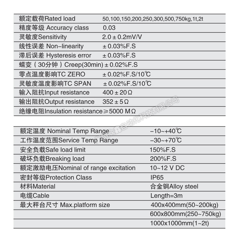 三、ILGB-50kg称重传感器产品参数