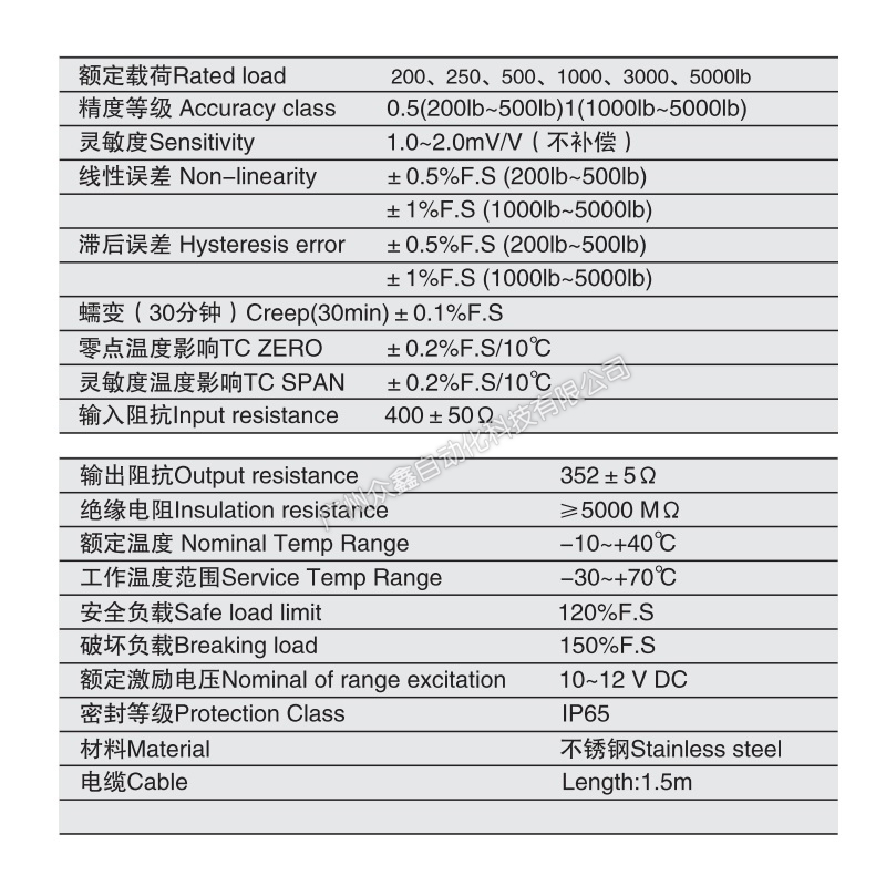 (3)精度等级0.5(200lb~500lb);1(1000lb~5000lb)