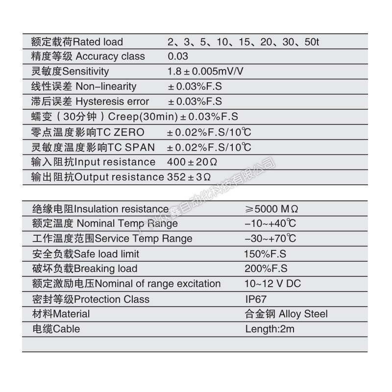三、NB-50t称重传感器产品参数