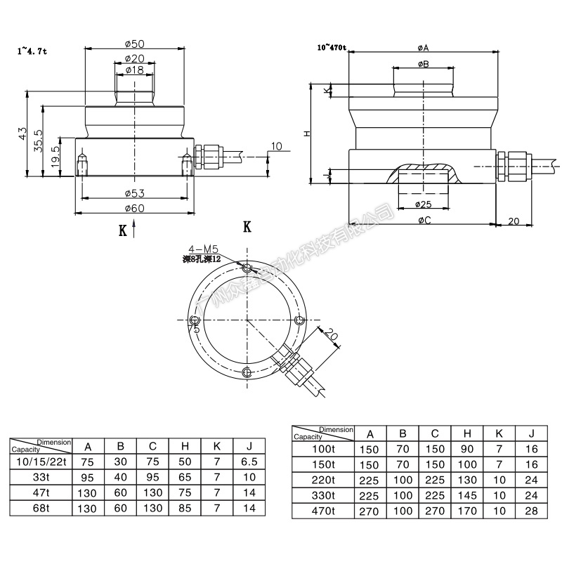 NHS-3.3t称重传感器,宁波柯力NHS-A-3.3t扭环式称重传感器