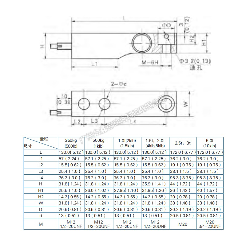 (2)合金钢材质,镀镍,单剪梁结构,胶封, 压向承载 (H8H)。