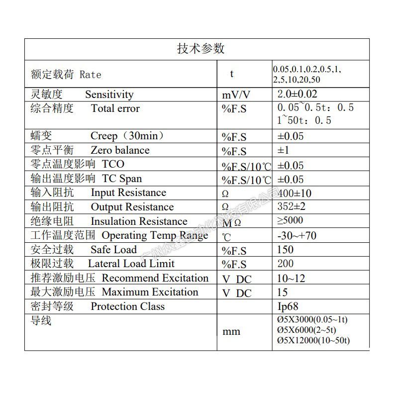 三、YBSC称重传感器产品参数