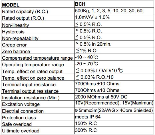 称重传感器相关型号:BCH-500kg,BCH-1t,BCH-2t,BCH-3t,BCH-5t,BCH-10t,BCH-20t,BCH-30t,BCH-50t.