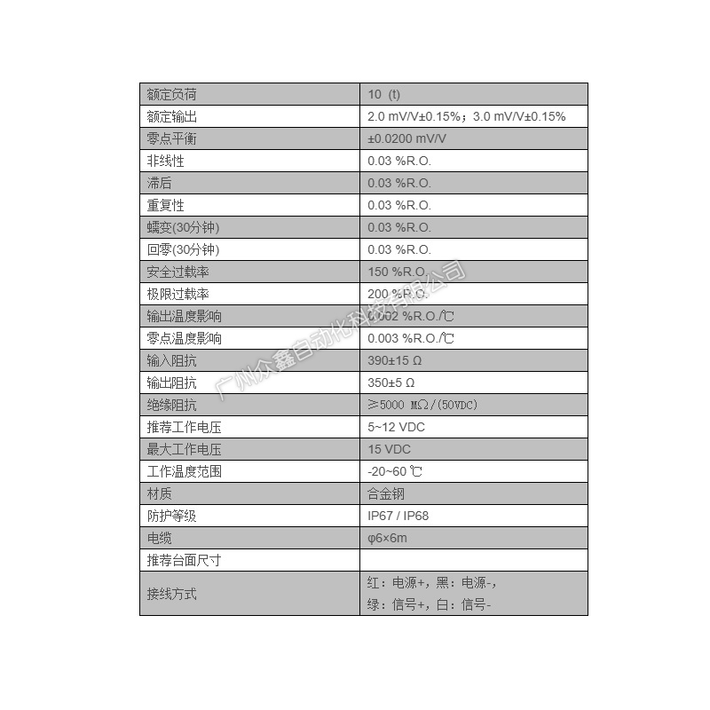 (1)传感器弹性体采用合金刚材质;表面镀镍处理;胶密封。