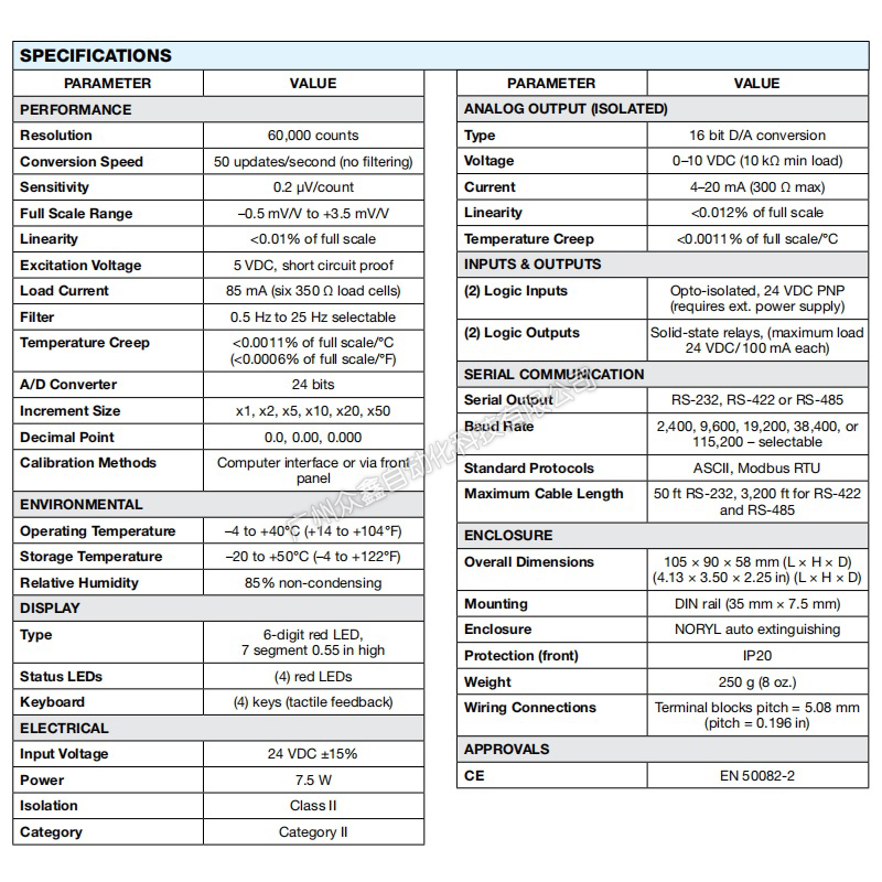 (1)PS-1045数字/模拟变送器为料罐/料仓/料斗称重系统提供信号调节、放大和相应的数字或隔离模拟输出信号。前面板配置和校准简化了系统安装和操作。校准和配置参数也可以通过基于PC的Pro-View软件下载。在任一情况下,都不需要dip开关或电位计调整。