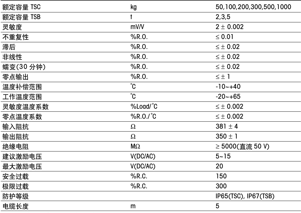 Mettler Toledo梅特勒托利多TSC系列技术指标