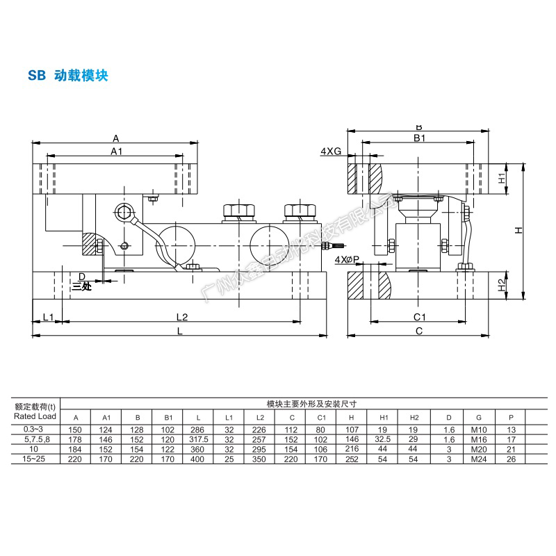 二、SB称重模块产品尺寸