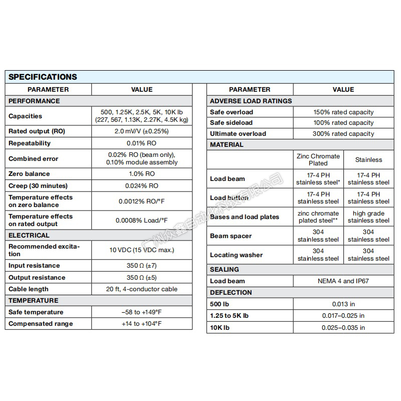 (3)EconoMount装置的标准容量范围为500、1.25K、2.5K、5K和10K磅,带有镀锌铬酸盐合金(标准)或不锈钢(可选)安装硬件。负载梁密封符合NEMA 4和IP67要求。EconoMount 1.25K至10K磅模块通过了lII和IIIL级秤系统的NTEP认证。