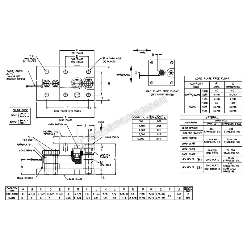 (1)容量范围:500千克、1.25千克、2.5千克、5千克和10K磅(227千克、567千克、1.13千克、2.27千克和4.5千克)