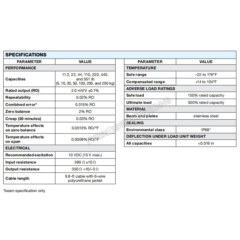 (1)容量范围:11.2、22、44、110、220、440、551和1.1k lb(5、10、20、50、100、200、250和500千克)