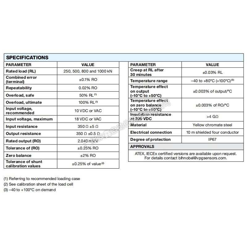 三、KIMD-1-250KN称重模块技术参数