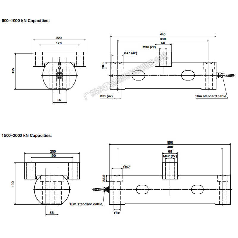 三、KIMD-M-2000KN称重模块技术参数