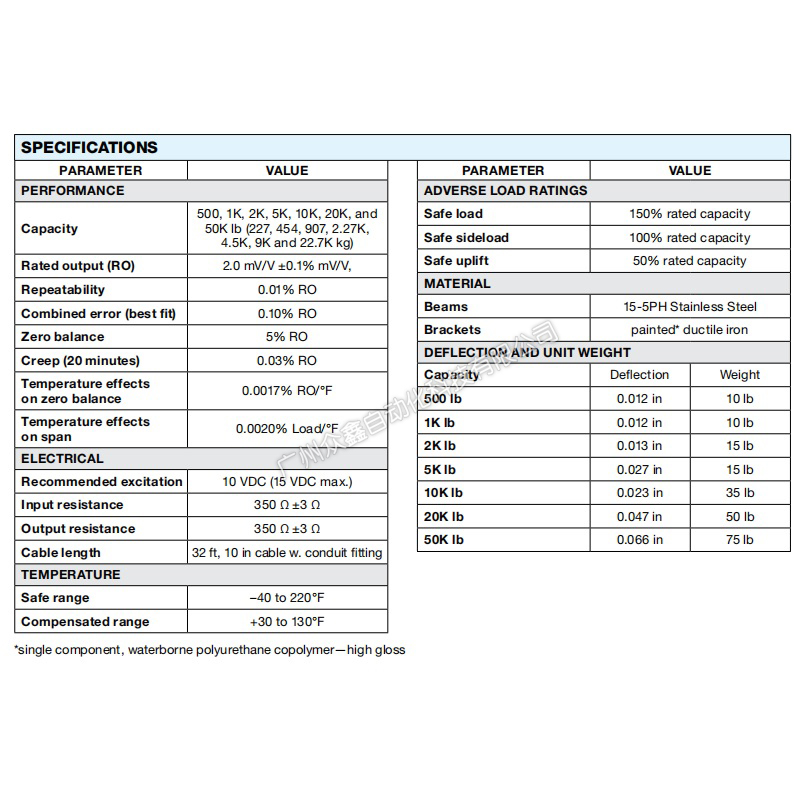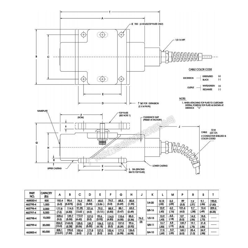 (1)容量范围:500、1K、2K、5K、10K、20K和50K磅(227、454、907、2.27K、4.5K、9K和22.7K千克)
