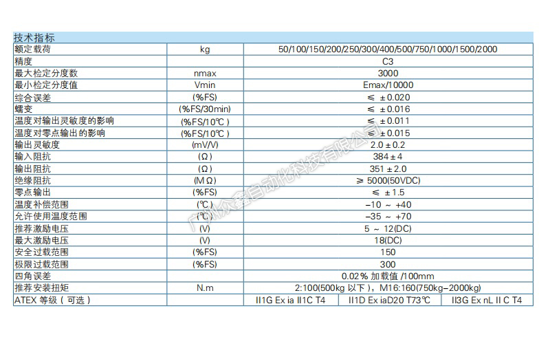 4、 Technical parameters of B6F-C3-50kg-3B6 weighing sensor