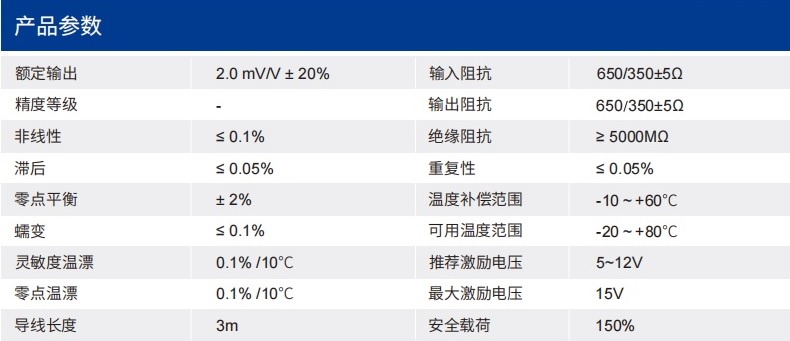 4、 Technical parameters of CR164-B tension and pressure sensor