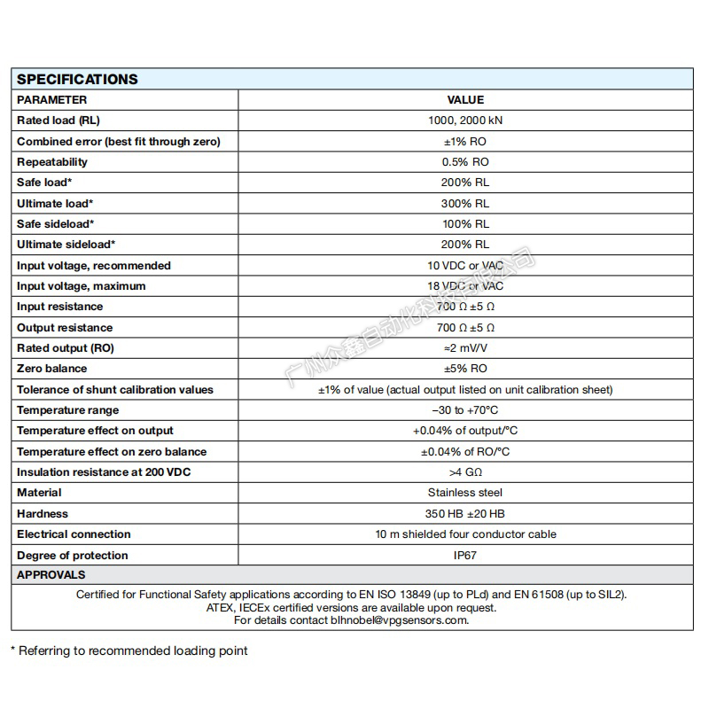 (1) Suitable for force measurement applications