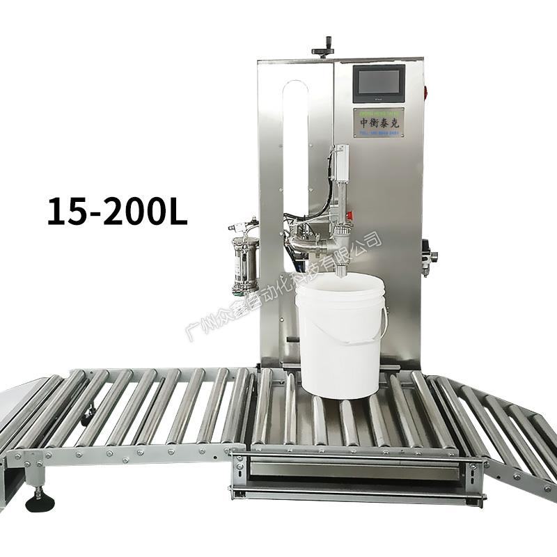 The material is pumped to the inlet pipeline of the filling machine, and the frequency converter controls the flow rate of the pump, which is fast first and then slow, using a weighing filling method. The main body of the machine is made of stainless steel material, with a filling capacity of 200/15-200L. This model of machine can inject most high and low viscosity, particle free, non explosive liquids, and is widely used in industries such as lubricating oil, hydraulic oil, cutting fluid, antifreeze, glass water, polyurethane, cosmetics, and daily chemical products.