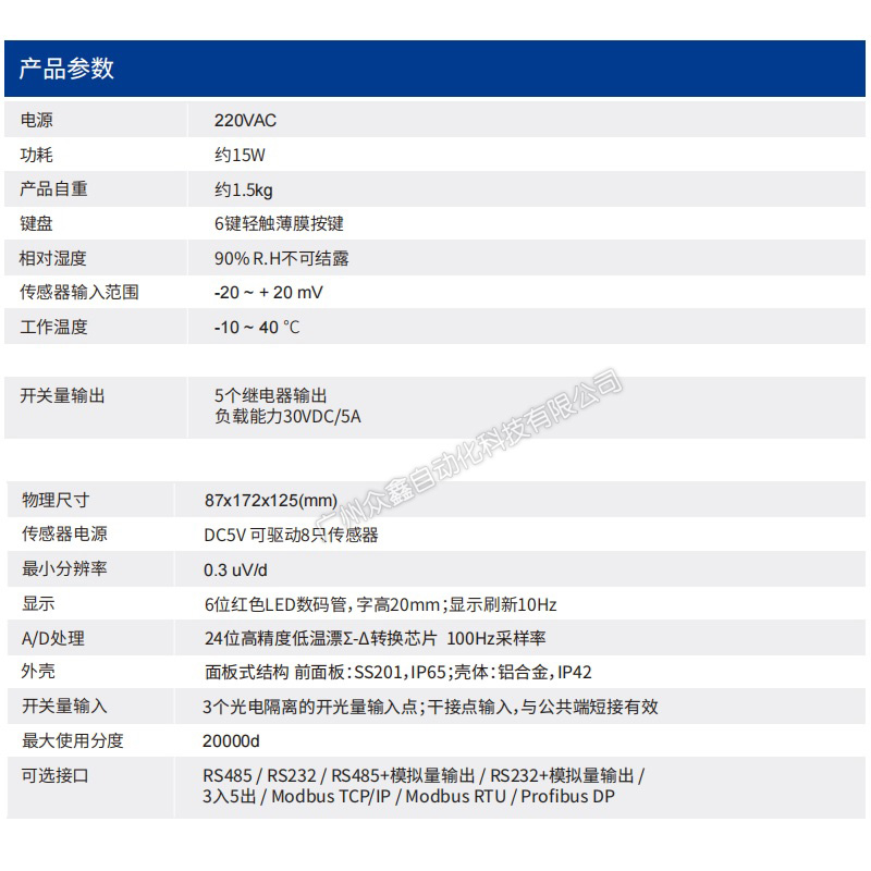The instrument is a device that uses a 32-bit high-speed microcontroller platform, a high-precision 24 bit analog-to-digital converter, and reliable plug-in wiring terminals for electrical connections. It is particularly suitable for high-precision weight collection in various industrial environments. Real time fieldbus communication with devices such as PC, PLC, DCS, etc. can be achieved. Widely used in metallurgy, chemical industry, building materials, coatings, grain and feed industries.