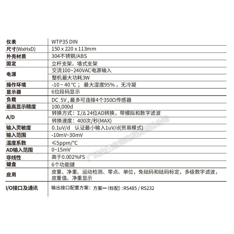 3、 Technical parameters of WTP35 DIN process weighing display controller