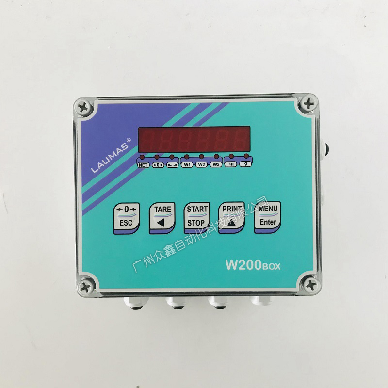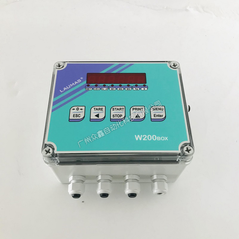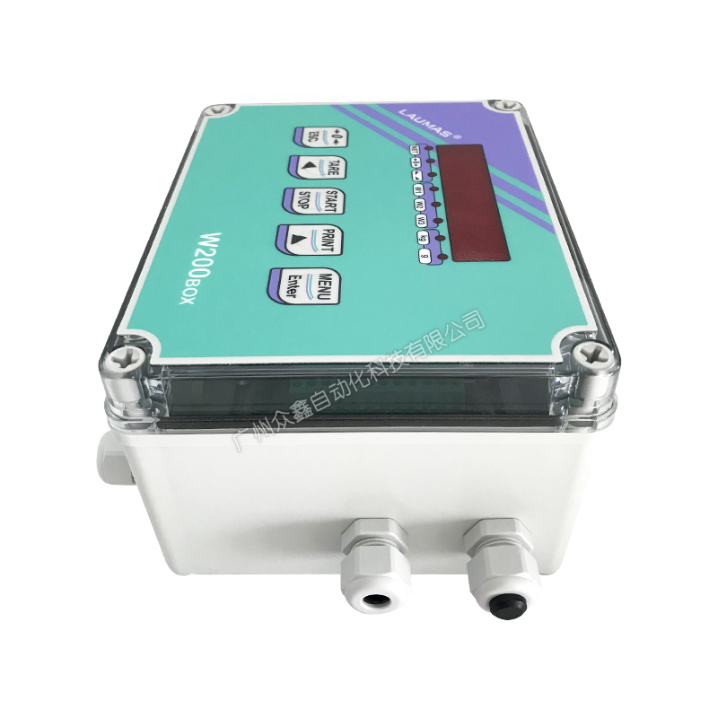 (1) Weighing display in IP67 polycarbonate waterproof box with 4+2 PG9 cable connector plugs, suitable for wall mounted installation (size: 170x140x95 mm; 4 fixing holes (diameter: 4 mm); Center distance: 152x122 mm): 170x140x95 mm; 4 fixed holes with a diameter of 4 mm; Center distance: 152x122 mm).