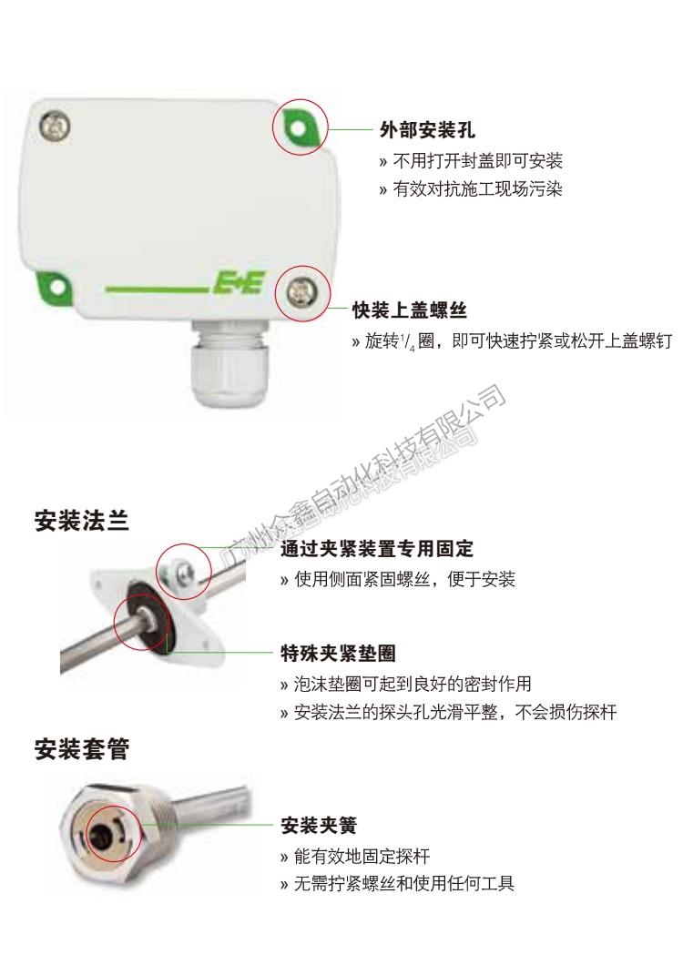 The EE431 series transmitter is a low-cost temperature transmitter designed specifically for temperature measurement in the HVAC field, suitable for BA systems, process and environmental control, gas and liquid measurement in commercial and conventional buildings. It has two installation methods: pipeline installation and plug-in installation. Pipeline installation is fixed on the air duct using the installation holes on the built-in flange or shell; The plug-in installation method is fixed on the liquid pipeline through the installation sleeve, which can be used to measure the temperature of the liquid.
