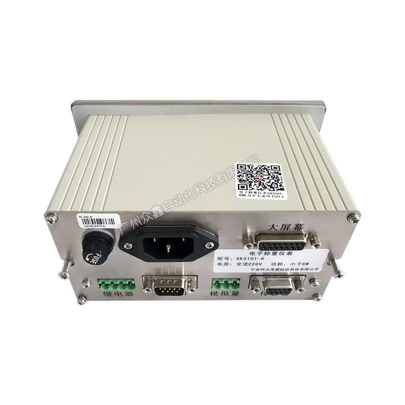 XK3101-K 是面向工业控制领域(或其他需要模拟量输出的应用场所)的电子称重仪表。前端信号处理采用高精度的 24 位专用 A/D 转换器,模拟信号输出采用 16 位的 D/A 转换器,具有 RS232/RS485 串行通讯接口,采用铝合金外壳,可方便的嵌入控制柜,可广泛用于水泥、化工、冶金等行业的称重系统。