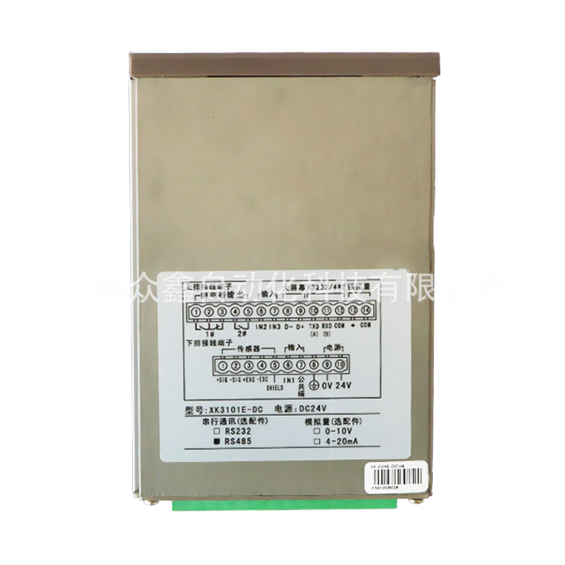 产品介绍:XK3101E是一种多用途称重仪表。采用高速采样及数据处理,适用于配料秤,定值包装秤,重量分选秤等。采用48×96mm铝合金外壳,可方便的嵌入控制柜。