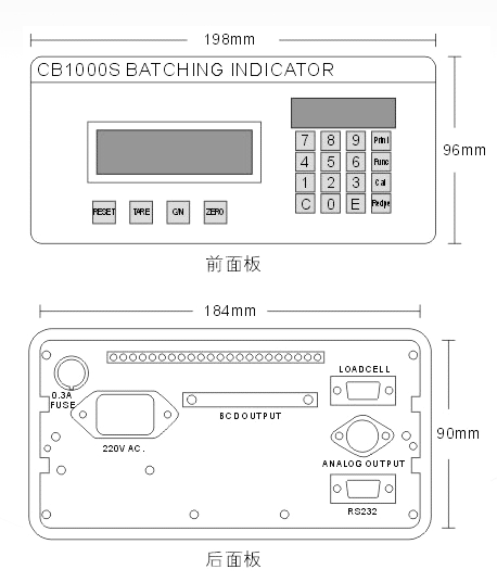 CB1000S可控制配料达15种之多,提供简单的PLC功能可简化外接逻辑电路,最多可储存20种配方,内置双工通讯口RS232/RS485,通过RS485可实现多点远程通讯,备有时钟电路,可实时报告物料消耗,当前生产数量,可显示个别批之配料报表, 以及显示实 际物料消耗的总量。内置时钟电路,可控制多至15种物料,15个特别设计之控制指令可简化外部逻辑电路,可储存20套配方,全自动快/慢速配料控制,全自动卸料控制,全自动过冲量补偿,全自动宽容度检测,可监控配料及卸料控制之时间,可执行点动配料,实际配料数量低于设定值可以重复配料,提供完善的配料应用软件,自动打印时间,日期及每次物料报告,物料消耗报告,配方生产报告,自动监察每一种物料消耗状况,可通过RS232/RS485或键盘输入生产数据。
