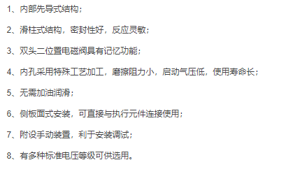2、电磁阀应保证在电源电压为额定电压的15%-10%波动范围内正常工作;